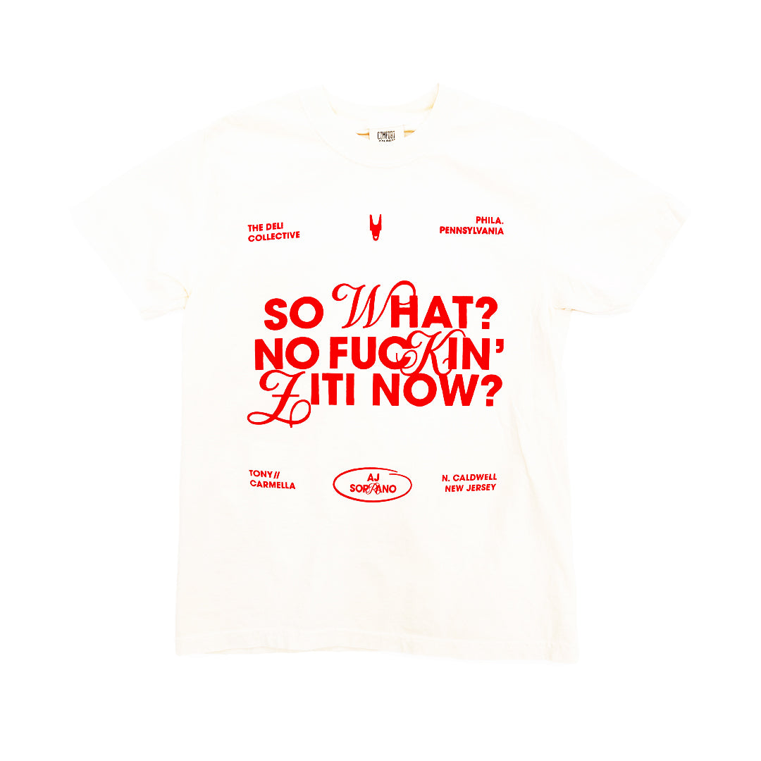 Inspired by our favorite quote from season one of The Sopranos, this fuckin ziti shirt is sure to make the goombas’ heads turn. 🤌🏽