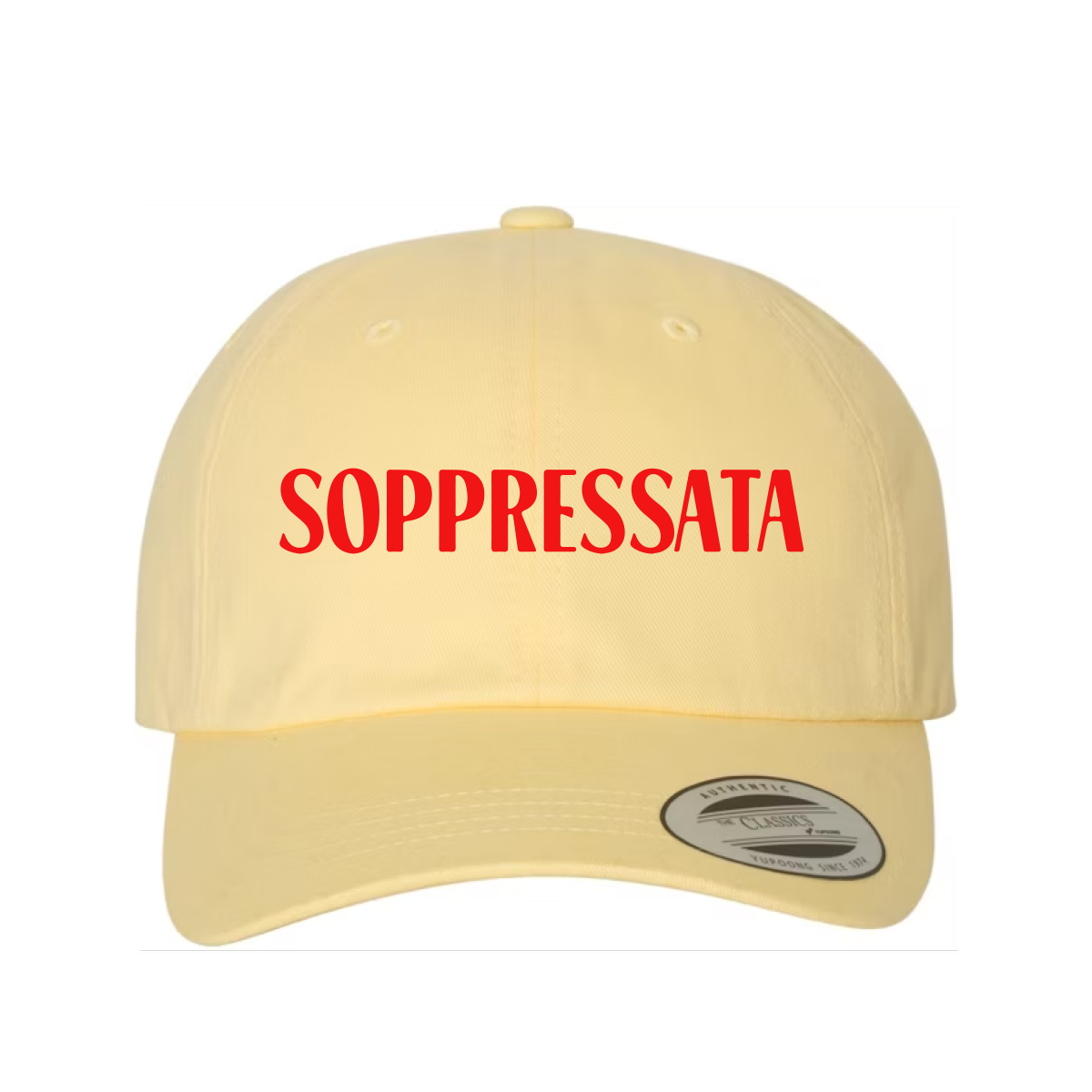 Introducing our stylish "Soppressata" embroidered hat, a tasteful accessory for any food aficionado. Crafted with premium materials, this hat not only offers comfort but also showcases your love for the delectable Italian cured meat. Elevate your outfit with a touch of culinary charm with our "Soppressata" embroidered hat. Salt & Vinegar x The Deli Collective Collaboration.
